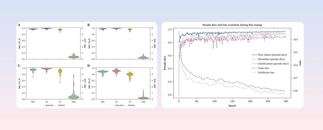 - Artificial intelligence and digital twin technologies provide a new way to plan endovascular interventions and can help practitioners anticipate complications. The accuracy of these methods is based on reliable automated aortic segmentation, including intraluminal thrombus (ILT), calcifications, and detection of collateral arteries. The aim of this study was to validate a new fully automated deep learning based aortic segmentation algorithm that could be used for optimised digital twin generation.